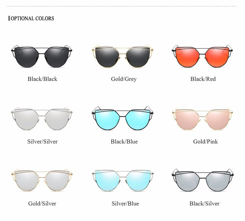 Cat Eye Mirrored Sunglasses for Women - WOLFIN LUXURY
